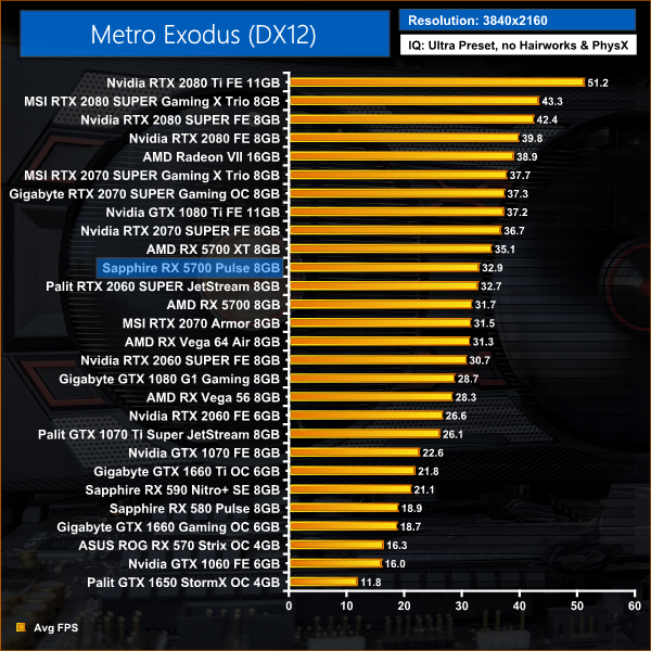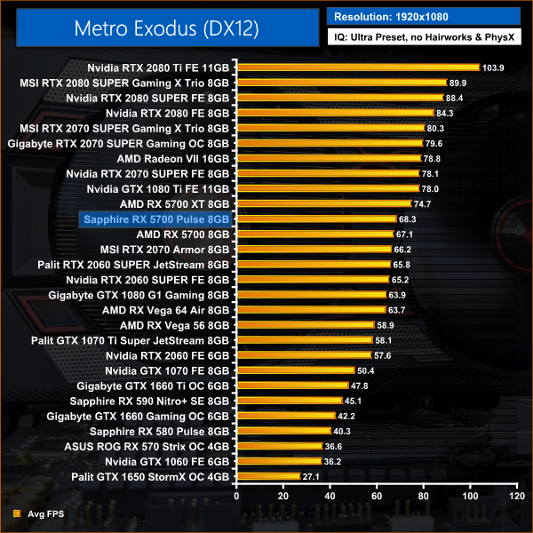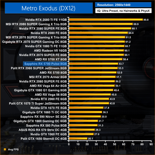 Metro Exodus continues our trend of ‘small margins', with the Pulse outperforming its reference cousin by less than 2FPS at 1440p.