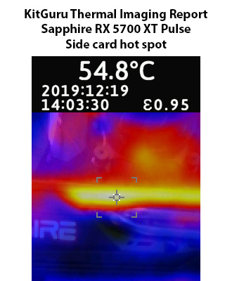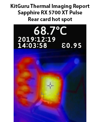 This level of performance is reflected in our thermal images, with hotspots not even reaching 69C on the back of the card. Sapphire has certainly built a good card here for keeping temperatures in check.