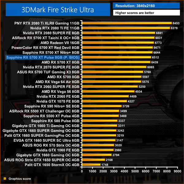 Based on the rated clock speeds for this Pulse 5700 XT, the 3DMark scores are exactly as expected, with small – no more than 1% – gains over the reference card.