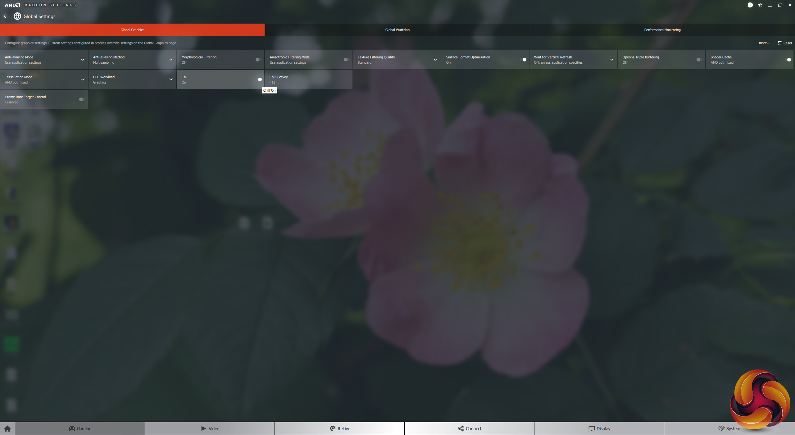Chill is my favourite feature of the Adrenalin driver. It's a simple but effective idea – with Chill enabled, your frame rate behaves as normal when moving around in-game. When you stop moving, however, Chill detects this and drops the frame-rate, meaning your GPU frequency slows, resulting in lower power draw.