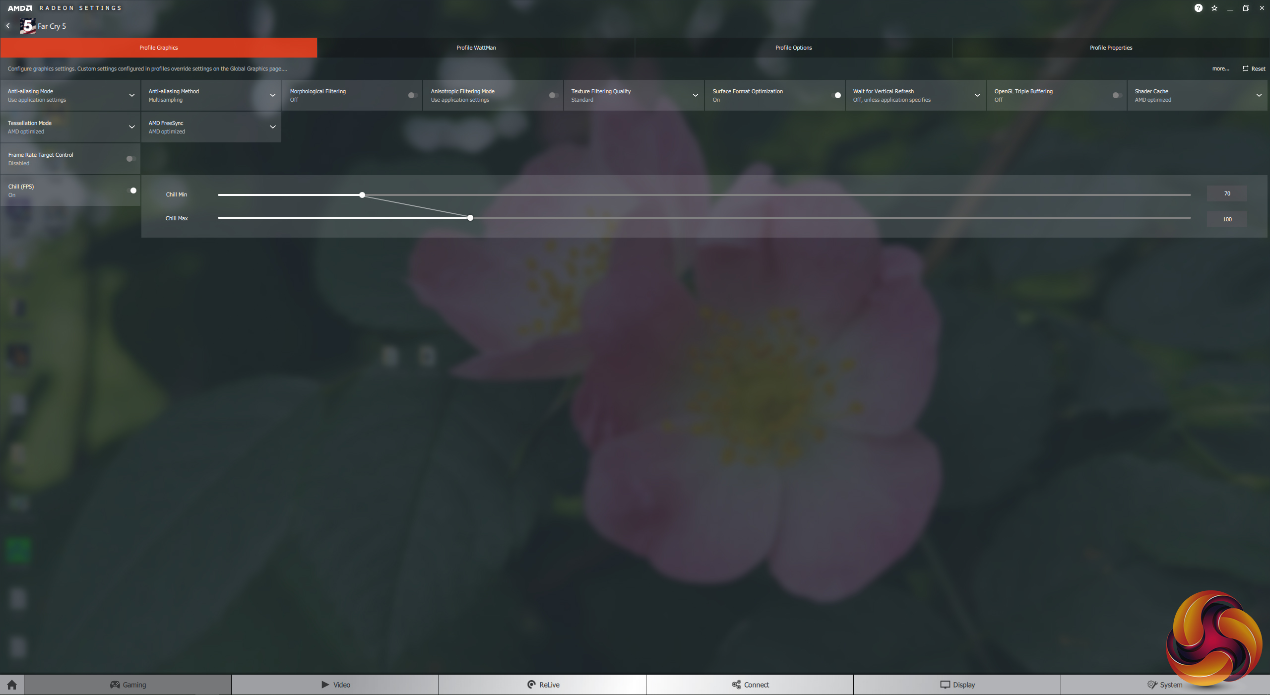 As you can see, having Chill enabled globally does not get the best from the technology. Instead, when you set a custom FPS target for each specific game, it can work wonders. The average FPS in our Far Cry 5 run, for instance, dropped to 44.7 – it would be right around 60FPS while I was running, but about half a second after I'd stopped, it would drop right down to 40. It's quite impressive.