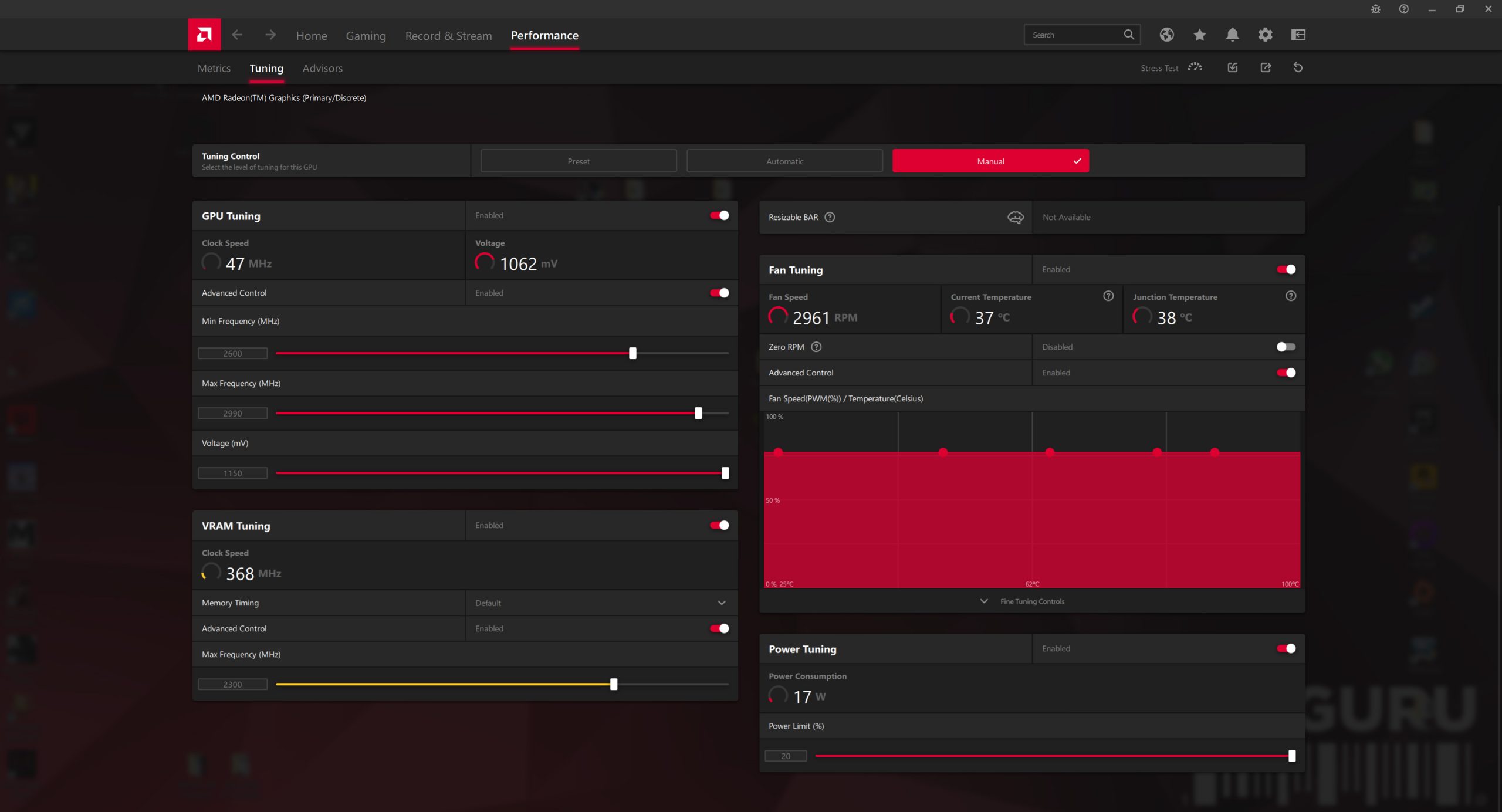 For our manual overclocking tests, we used AMD's built-in tuning tool. Our best results are as below.