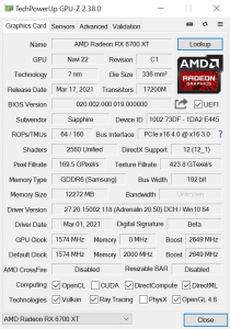 | RX 6900 XT | RX 6800 XT | RX 6800 | RX 6700 XT | RX 5700 XT | |
