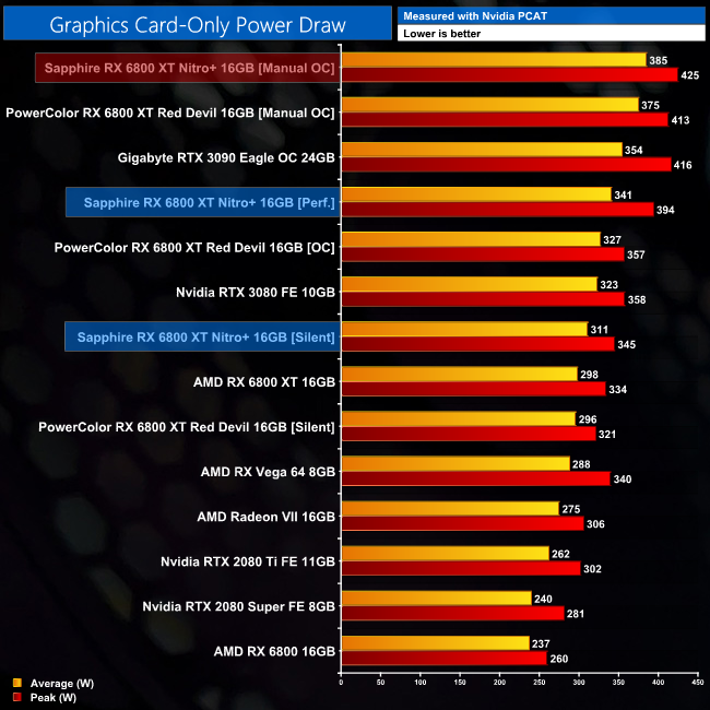 Power draw meanwhile, increased to 385W when manually overclocked, which is a 13% increase over the stock Performance BIOS.