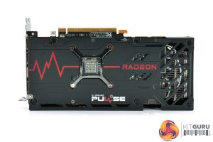 Moving on, in terms of its dimensions, the Pulse comes in at 240 x 107.1 x 44.07mm, so it's fairly short as modern cards go, and only just thicker than two PCIe slots. It is a touch longer than AMD's reference card however, while the Pulse also weighed in at 619g on our scales, making it 130g lighter than the AMD reference design.