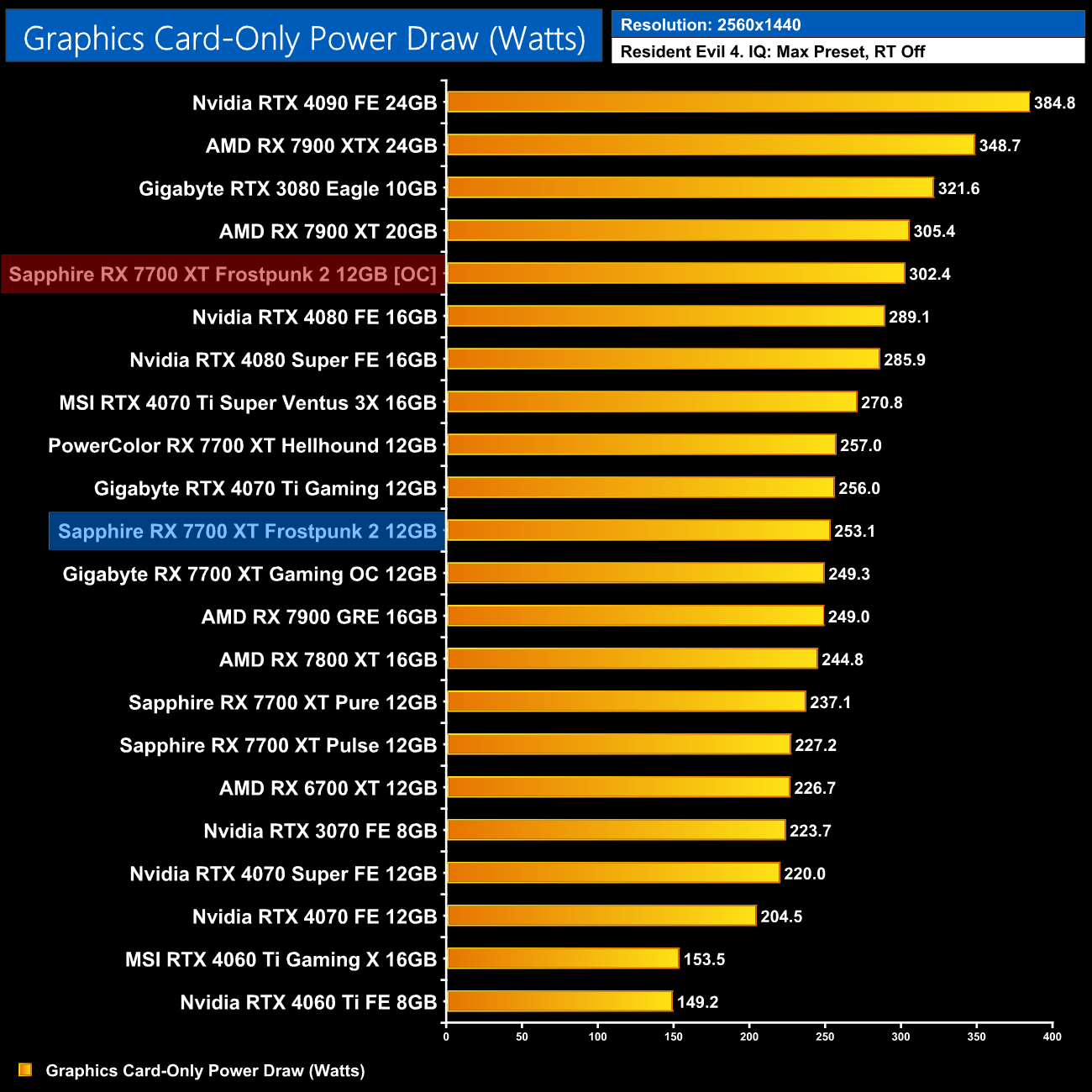 Power did shoot up however, coming in at just over 300W, so that's a 19% increase over stock.