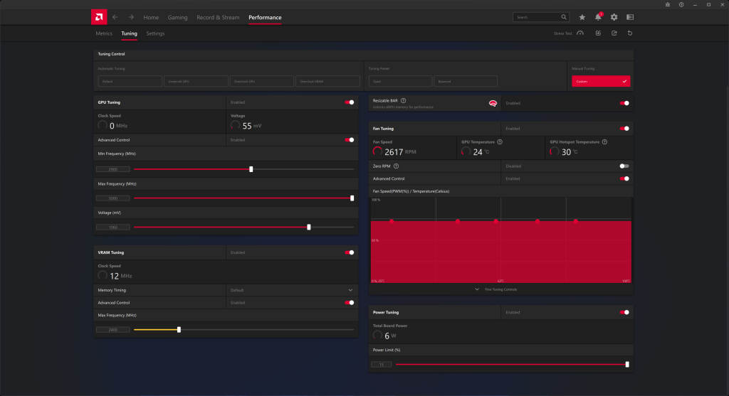 For our manual overclocking tests, we used AMD's built-in tuning tool. Our best results are as below.