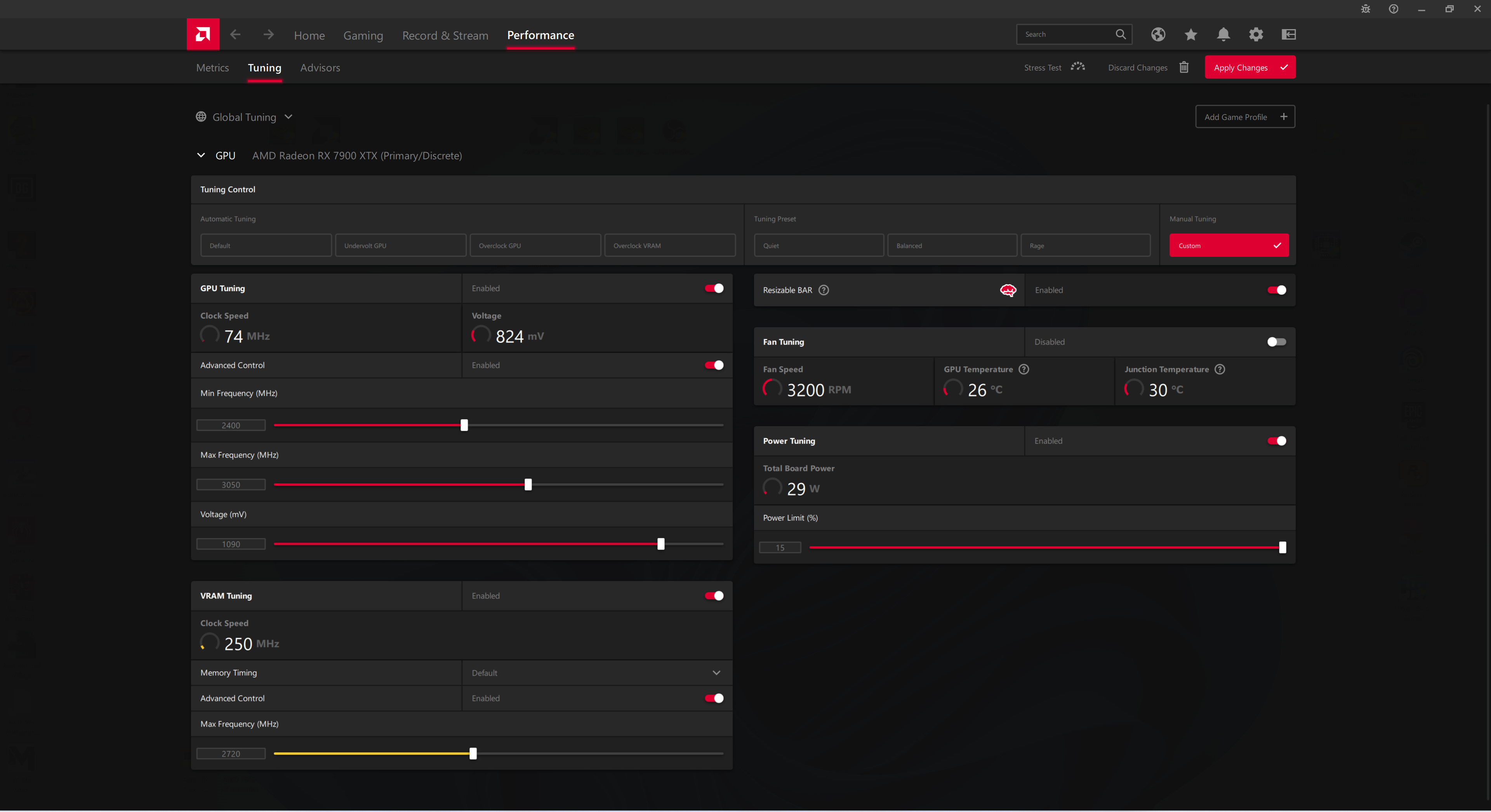 For our manual overclocking tests, we used AMD Wattman. Our best results are as below.