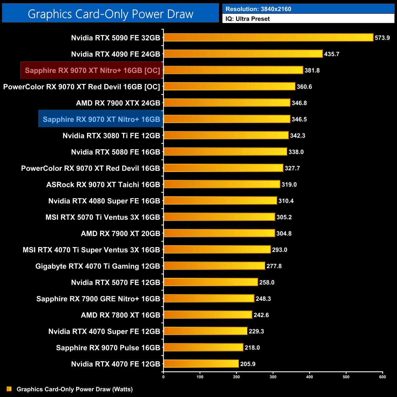 We did see power draw rise a good amount however, hitting just under 382W when overclocked – a 10% increase over stock.