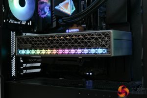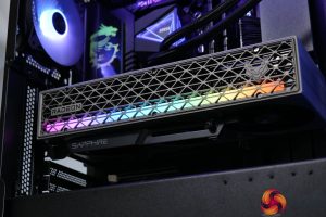 That's only enhanced by the LED strip too, something that's been carried over from the previous generation. It's not too in your face, the LEDs are well diffused, and the lighting can be controlled either in Sapphire's TriXX software or via your motherboard if you attach the ARGB cable.