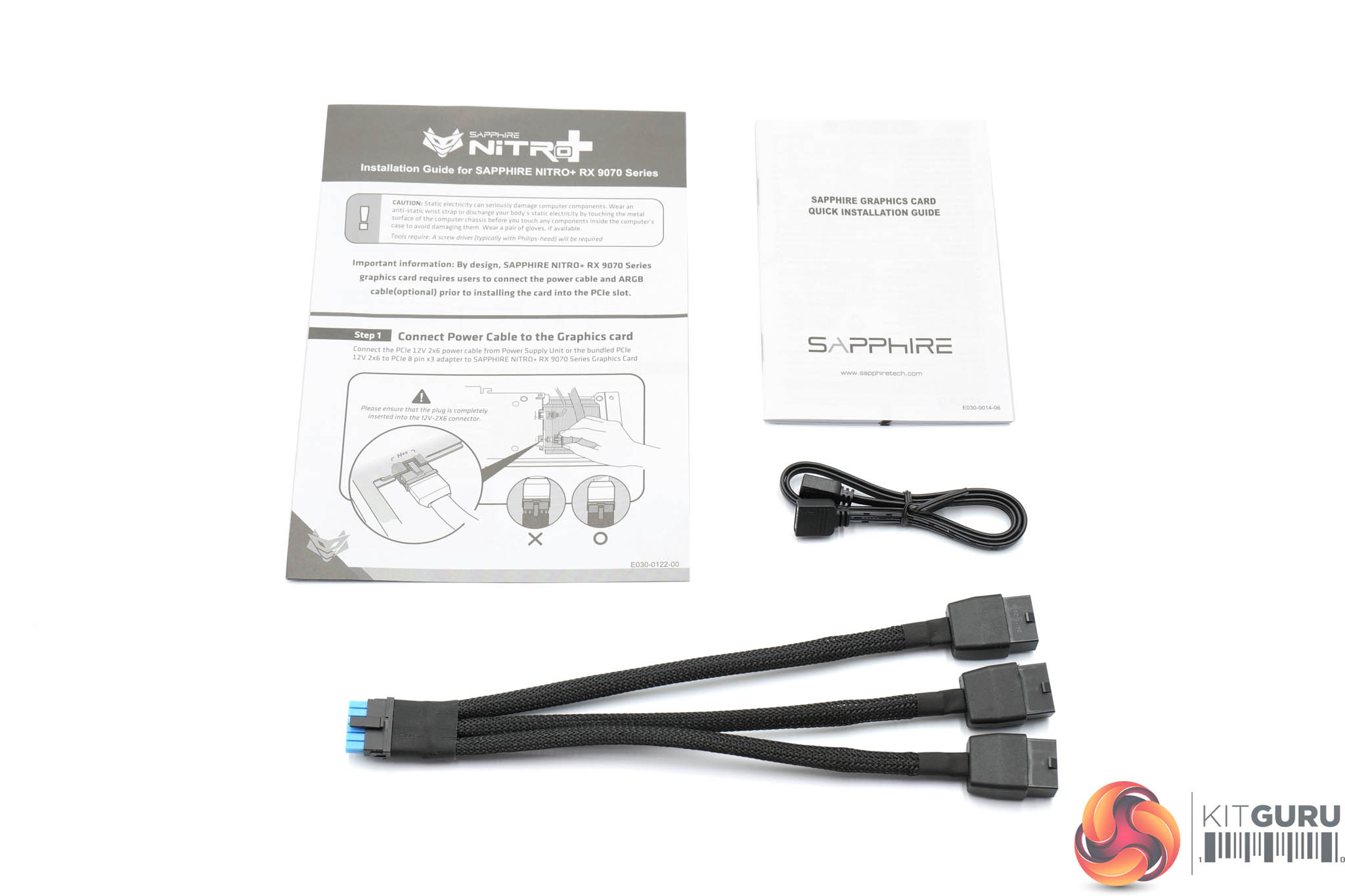 Inside, a couple of quick-start guides are included, along with an ARGB cable and triple 8-pin power adapter. A GPU support bracket also comes bundled, I would have preferred if it was colour matched to the rest of the card, but that's only a minor point.