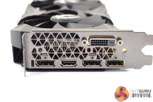 In terms of I/O, we find 3x DisplayPorts, 1x HDMI and 1x DVI-D – but interestingly no USB-C which has quickly become standard for RTX cards.