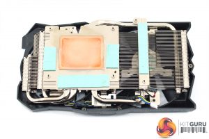 The heatsink makes use of 5 nickel-plated heatpipes, and they all look like they measure 6mm. Given the size of the card, the aluminium fin stack is not thick dense at all, and I am very interested to see how hot this card runs – but we will get to that later in the review.