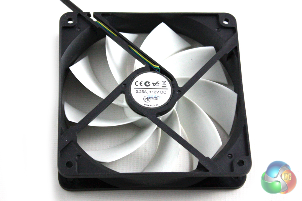 Arctic include an own-branded 120 mm fan with the cooler which can be attached in various configurations to the radiator. This doesn't have a standard connector, so must be connected directly to your graphics card rather than to a standard 3 or 4-pin connector.