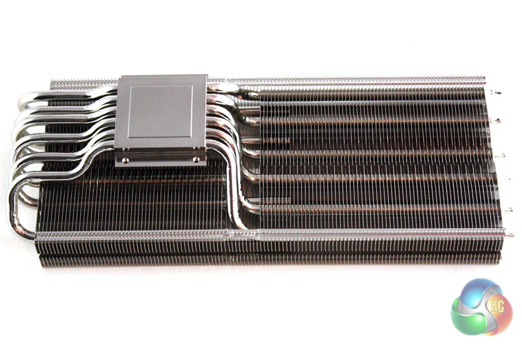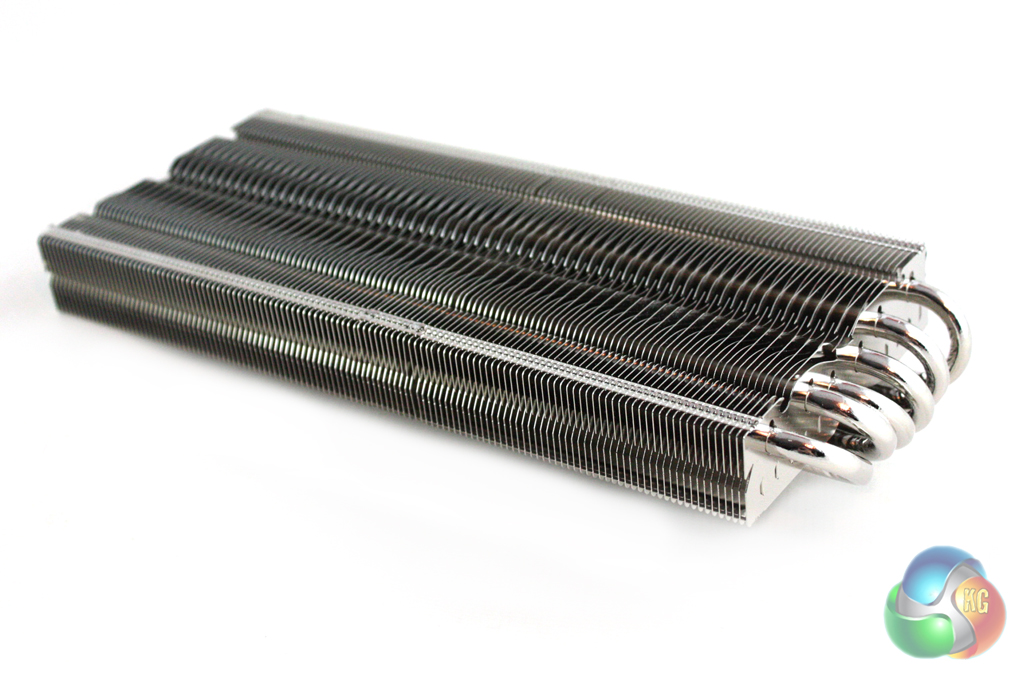 The heatsink comprises 129 aluminium fins arranged across the nickel-plated copper heatpipes – providing a large surface area for heat dissipation.