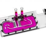To offer improved compatibility of custom liquid-cooled reference design Nvidia RTX 2080 Ti graphics cards in small form factor systems, EKWB has removed the terminal block and instead, the fittings screw directly to the acrylic top, allowing for a narrower enclosure.
