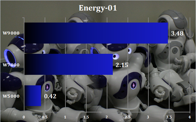 The Energy-01 test's huge viewsets play to the W9000's strengths, giving it a 62 per cent benefit over the W7000 – and over eight times the performance of the W5000.