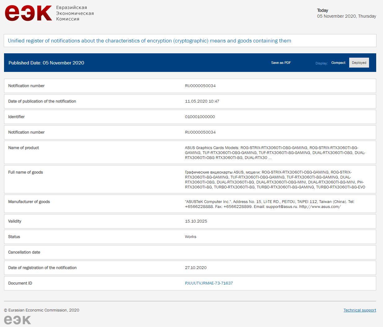 Asus has submitted its RTX 3060Ti graphics cards to EEC (Eurasian Economic Commission). As per usual, EEC listings are registered a few weeks before launch, meaning that an official release of the RTX 3060Ti before this year ends is most likely going to happen.