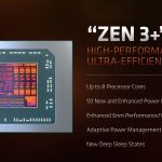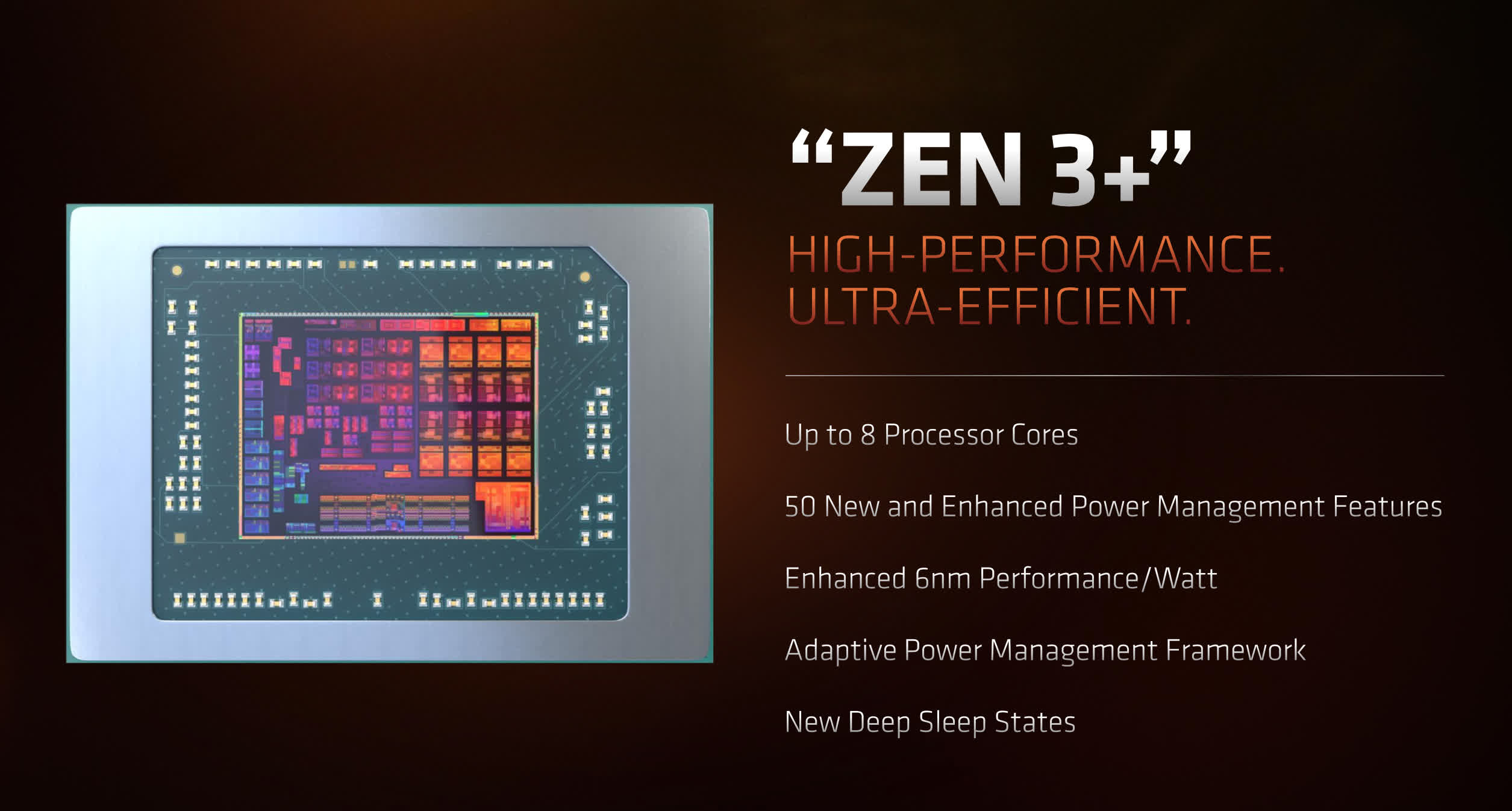 Moving to the laptop segment, AMD announced the Ryzen 6000 series APUs. Based on the TSMC N6 node, the new Ryzen mobile APUs feature up to 8x Zen3+ cores with SMT, RDNA 2 graphics and over 50 power management features for increased efficiency and performance. These processors will run on a new platform that brings 16x PCIe 4.0 lanes, support for USB4, DisplayPort 2 and HDMI 2.1 ports, Wi-Fi 6E and BT LE 5.2 connectivity and AV1 hardware decode capabilities.