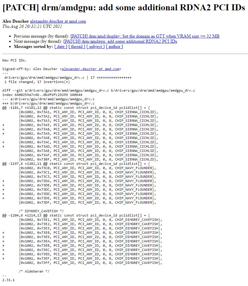 At this point, adding new SKUs to the Radeon RX 6000/6000M series wouldn't make much sense. This series already features multiple SKUs aimed at gaming and workstations in both desktop and laptop form. However, as reported by Phoronix, 17 new PCI IDs were found on the AMD GPU Linux driver. Out of these 17 entries, 5 are Sienna Cichlid (Navi 21) GPUs, another 5 are Navy Flounder (Navi 22) GPUs, and the last 7 are Dimgrey Cavefish (Navi 23) GPUs. That is quite a lot, considering the Radeon RX 6000/6000M series already features so many SKUs.
