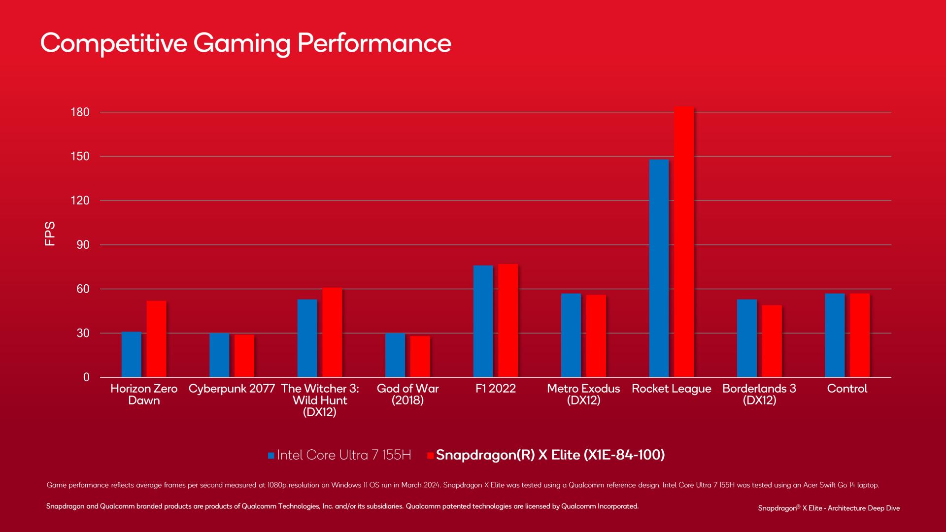 Qualcomm has claimed that the Adreno X1-85 can match or even surpass Intel graphics in many games and consume less power while doing so. However, independent testing and detailed information regarding game settings are still unknown.