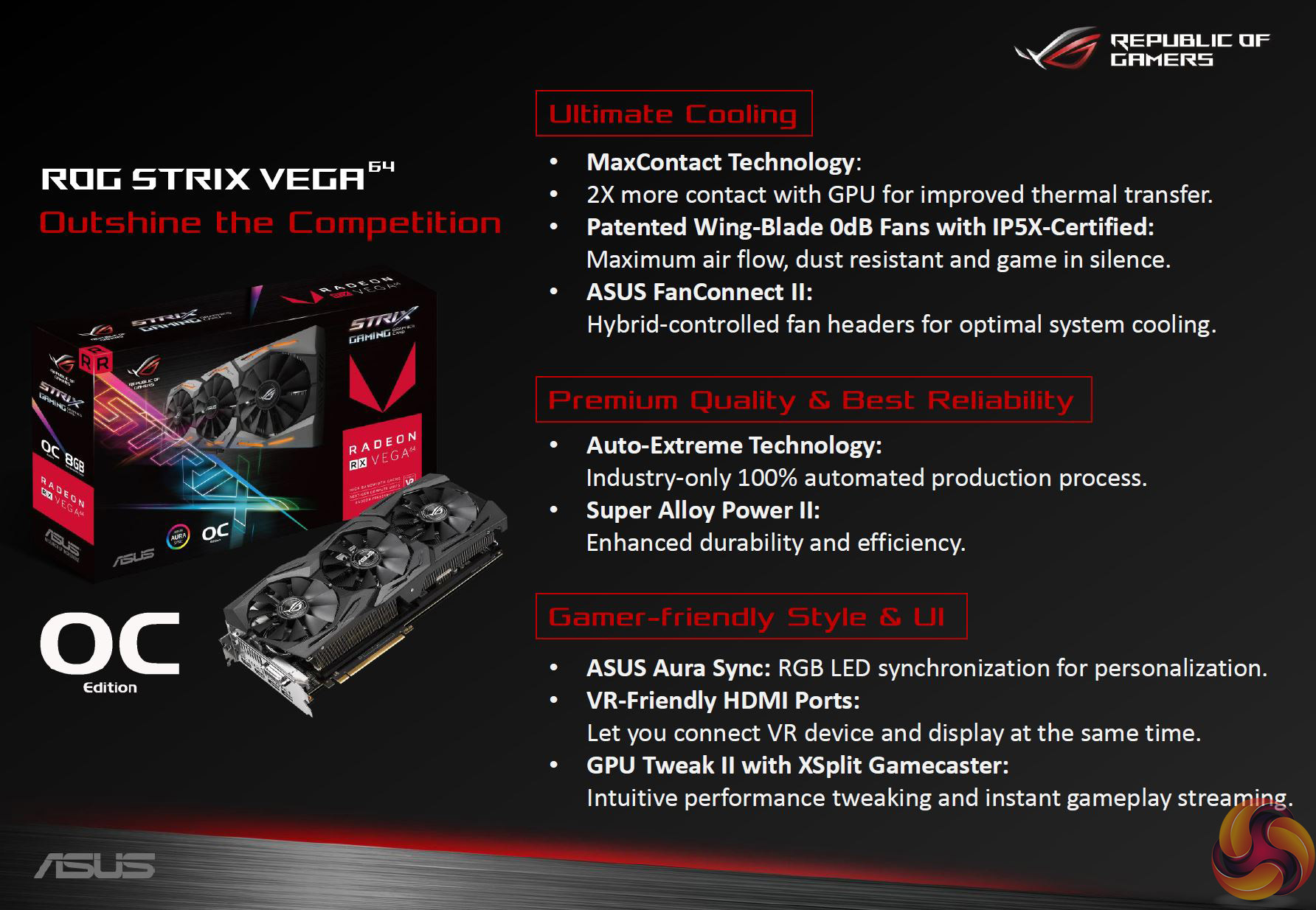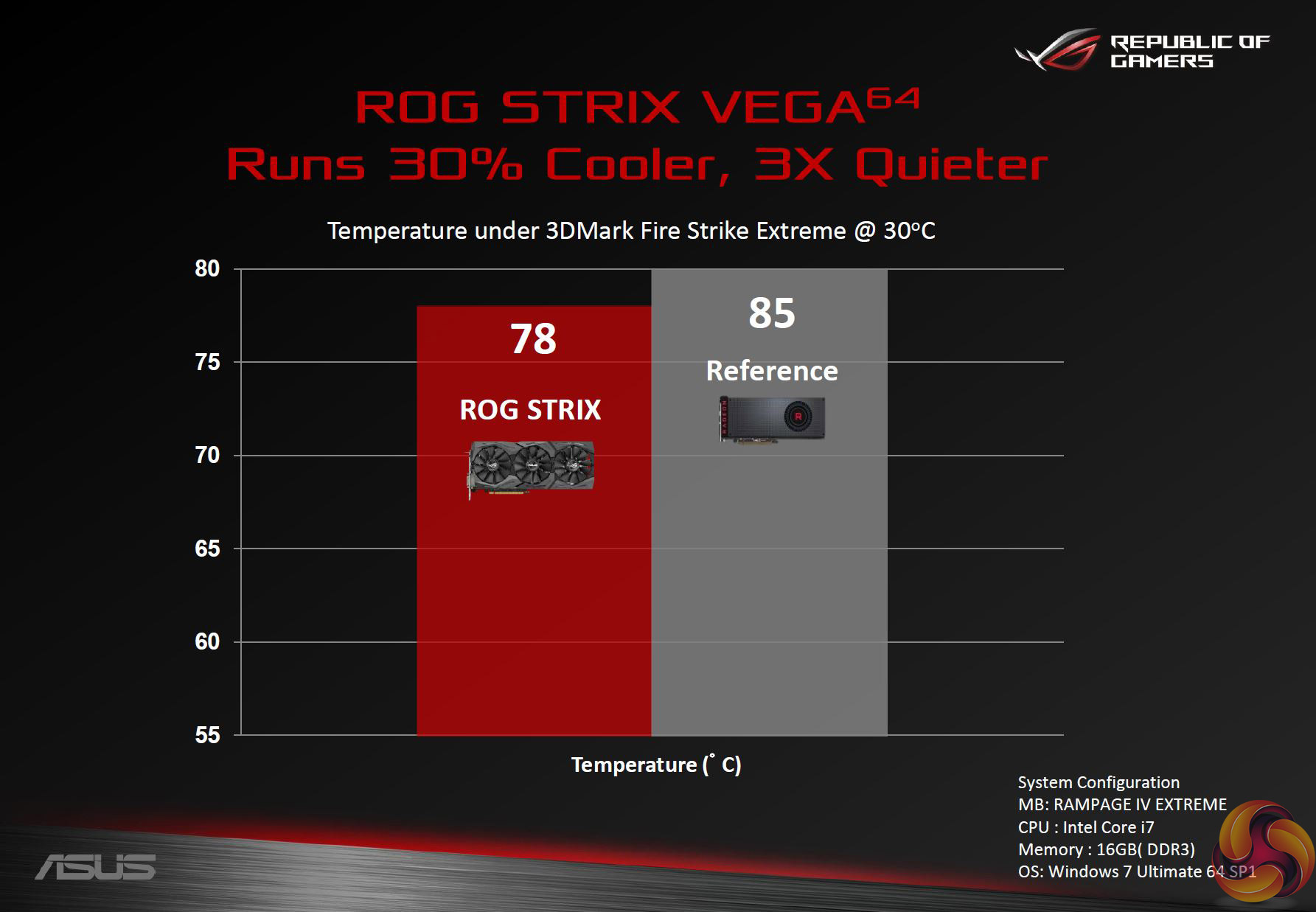 We will be addressing all those points when we get a finalised card in for review but right now we are happy to say the ROG Strix RX Vega64 looks impressive and is amazingly quiet when working under heavy load. In addition, we would love to see Asus squeeze more performance from Vega64.