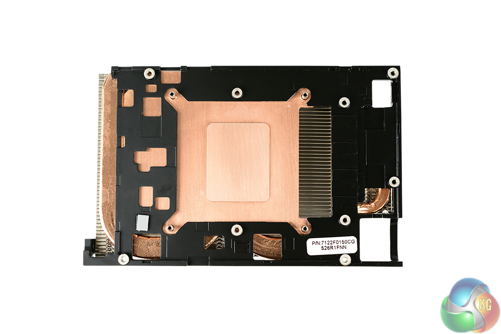 An indentation is cut into the aluminium fin array in order to make room for the relatively thick 92mm fan. As we have already discussed, the fin orientation is from the front to the rear of the card. This helps to reduce the amount of hot air that spills inside a chassis, although it does mean that a significant proportion will be blown directly out of the front of the card, as well as through the rear vent.