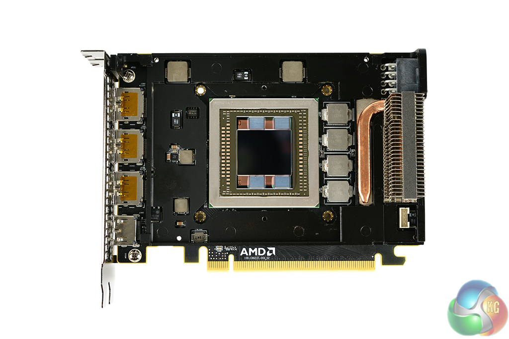 Vents on the side of the card run parallel to the heatsink's fin array. AMD representatives were keen to indicate that the fin array has been designed run in the card's front-to-back direction, rather than side-to-side.