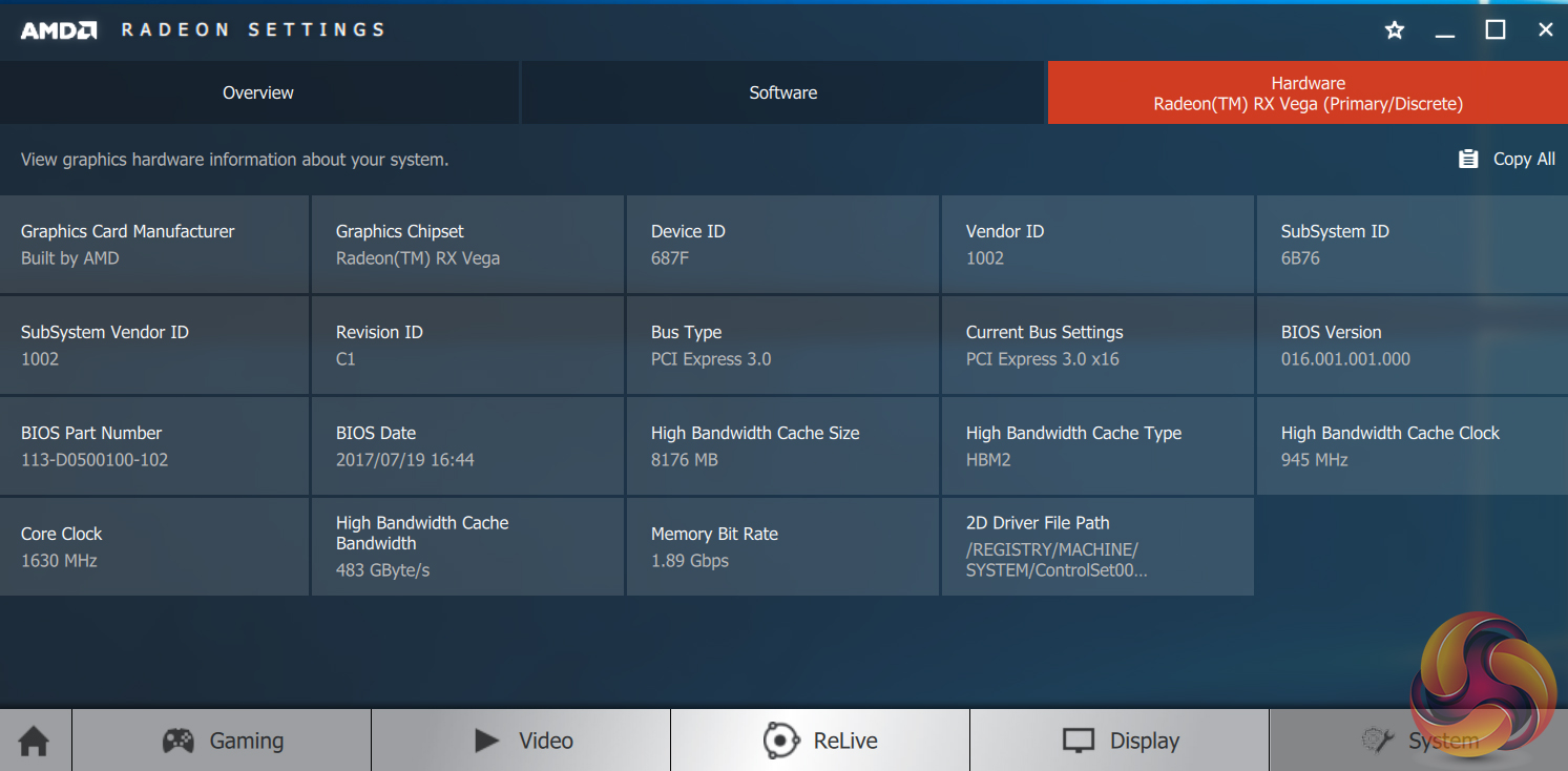 You may hear this memory referred to as a ‘High-Bandwidth Cache (HBC)', alongside the ‘High-Bandwidth Cache Controller (HBCC)'. AMD's use of the word ‘cache' is a reference to the card's ability to access system RAM to make a wider pool of memory available to the GPU. So the ‘cache' term bears no significant reference to the 8GB of dedicated HBM2 VRAM in itself. If, for example, you have a large data set that fills the 8GB of dedicated HBM2 memory, a quantity of system memory can be allocated to the GPU to create a larger available pool.