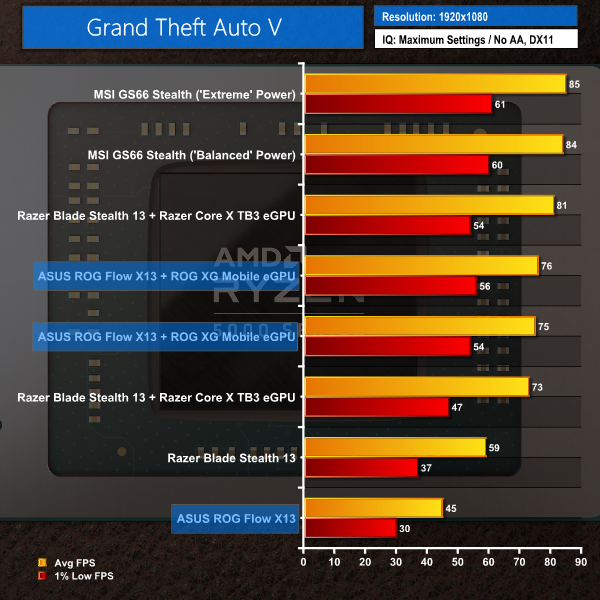 However, eGPU gaming still has plenty of room for improvement at 1080p, especially when looking at games such as GTA V. Sometimes, it seems, powerful internal hardware is simply a better setup than ASUS' proprietary solution.