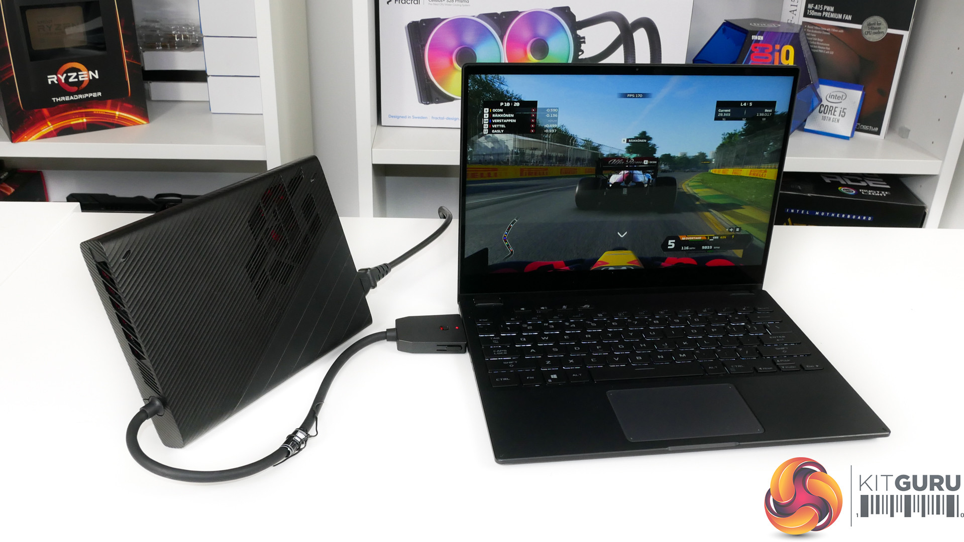 We are testing the eGPU configurations running the display back to the laptop screen and also running to an external monitor. There can be sizable variations in eGPU performance from test-to-test and some games are less punishing than others for routing back to the internal laptop display. It will be interesting to see if the higher bandwidth connection on ASUS’ technically less powerful eGPU will allow it any performance victories.
