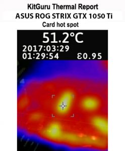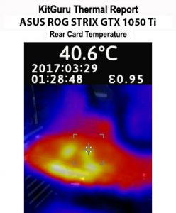Unfortunately, a death to our Core i5-6400 CPU means that we are no longer able to use the same system used for testing the other graphics cards. This means that our temperature data is only able to show ASUS' ROG STRIX GTX 1050 Ti OC due to the use of a different test system with different temperatures.