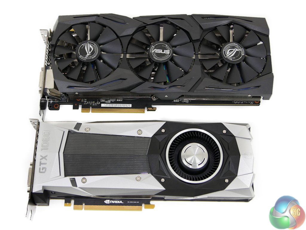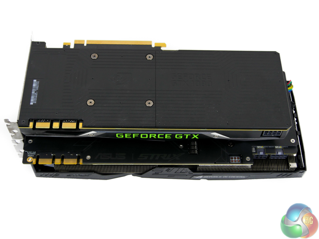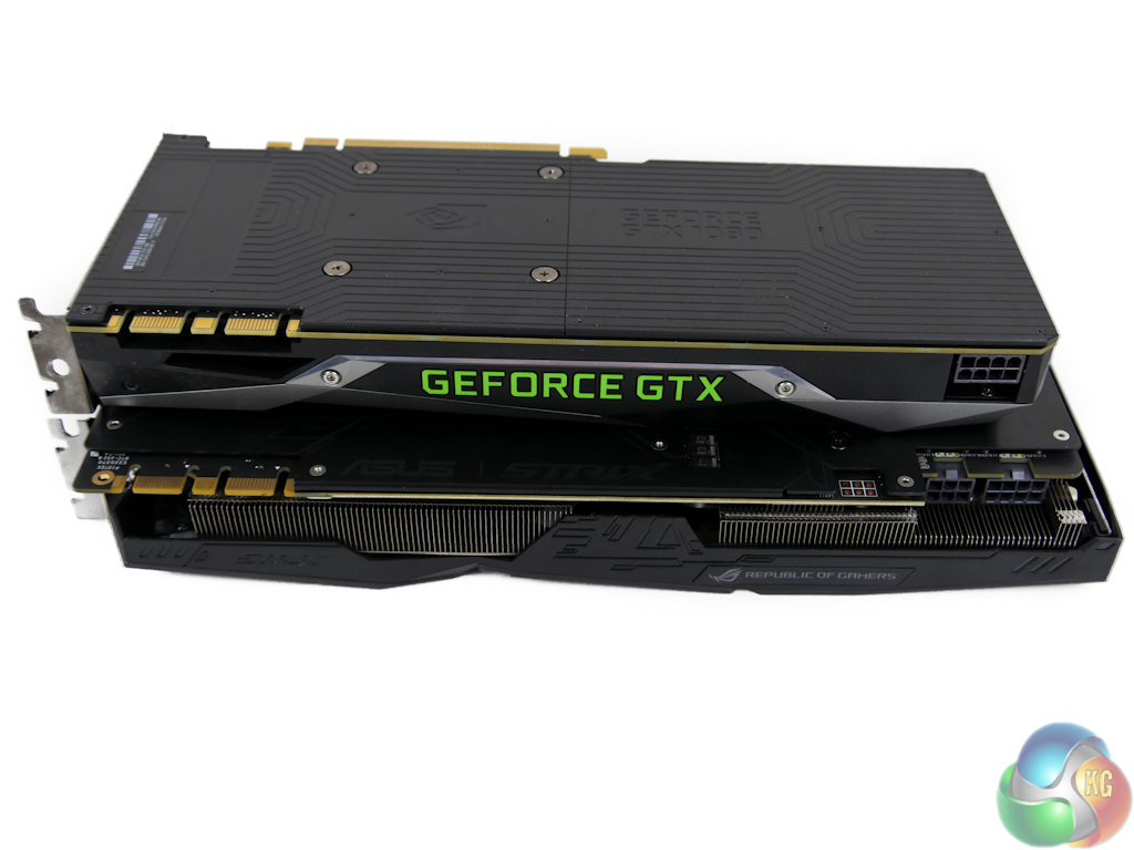 ASUS does, however, have a largely black styling in its favour which may appeal to some buyers more than the GTX 1080 FE's silver shroud and green logo.
