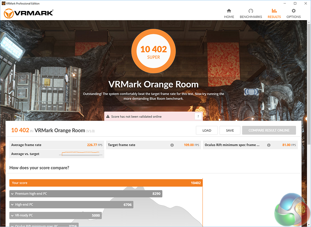 The Orange Room test compresses the scores for high-end graphics cards and shows that many of today's options are capable of delivering a solid experience for HTC Vive and Oculus Rift-type resolutions (2264×1348 test resolution). Blue Room and its 5120×2880 rendering resolution, on the other hand, is an absolute killer for graphics cards but it does show tangible gains when stepping up through the performance hierarchies.