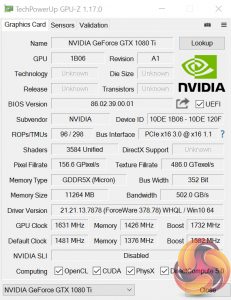 Nvidia claims that the GTX 1080 Ti GPU was able to hit around 2GHz in their own testing. We can't disagree with that as GPU Boost 3.0 took the core clock on our card to 2GHz for periods of the 3DMark Fire Strike Ultra test run.