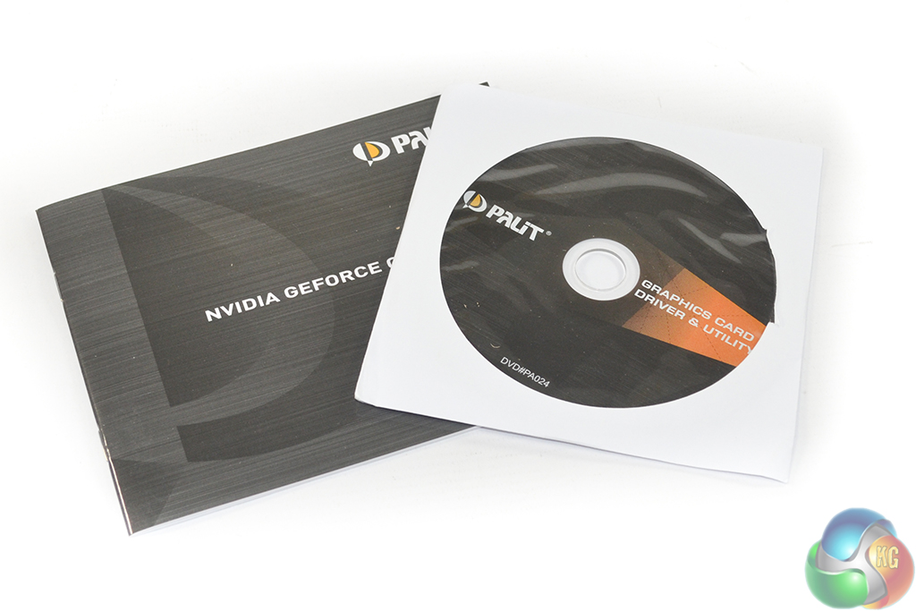 Palit ships its GTX 950 StormX Dual in typical packaging for the company. A drivers CD and manual are supplied.