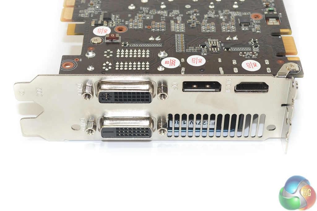 Outputs are provided in the form of Dual-link DVI-D, DVI-I, HDMI 2.0, and DisplayPort 1.2. I think this is the ideal configuration for a card of GTX 950 performance level and price; gamers with an older secondary monitor can use VGA via the DVI-I port, and those interested in 4K have a choice of HDMI 2.0 or DisplayPort 1.2.
