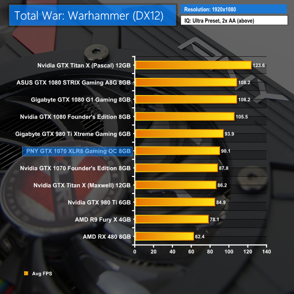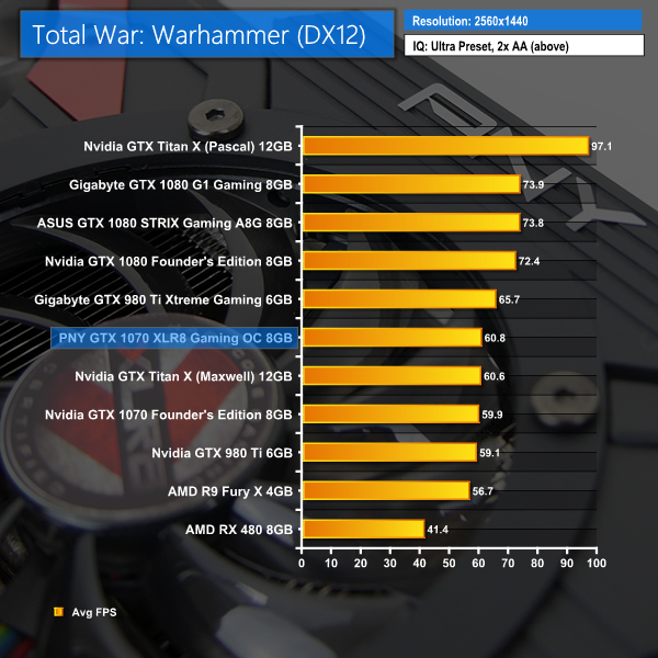 If you like to play Total War: Warhammer, the PNY GTX 1070 XLR8 OC will do a very good job at 1440P and 4K will also be just about playable.