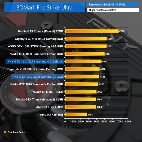 These increases are small but the PNY GTX 1070 XLR8 OC is already overclocked by around 100MHz out of the box.