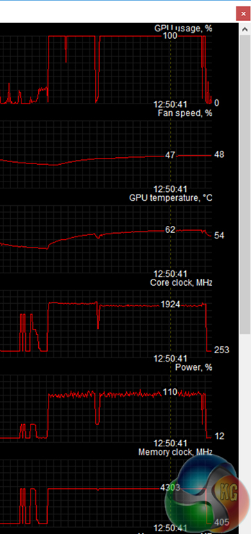 The actual GPU Core clock hovered around 1924-1970MHz during 4K gaming which is only around 20-50MHz higher than the resultant GPU Boost 3.0 core clock at stock levels. This is a little disappointing but it is the nature of the GPU Boost 3.0 beast.