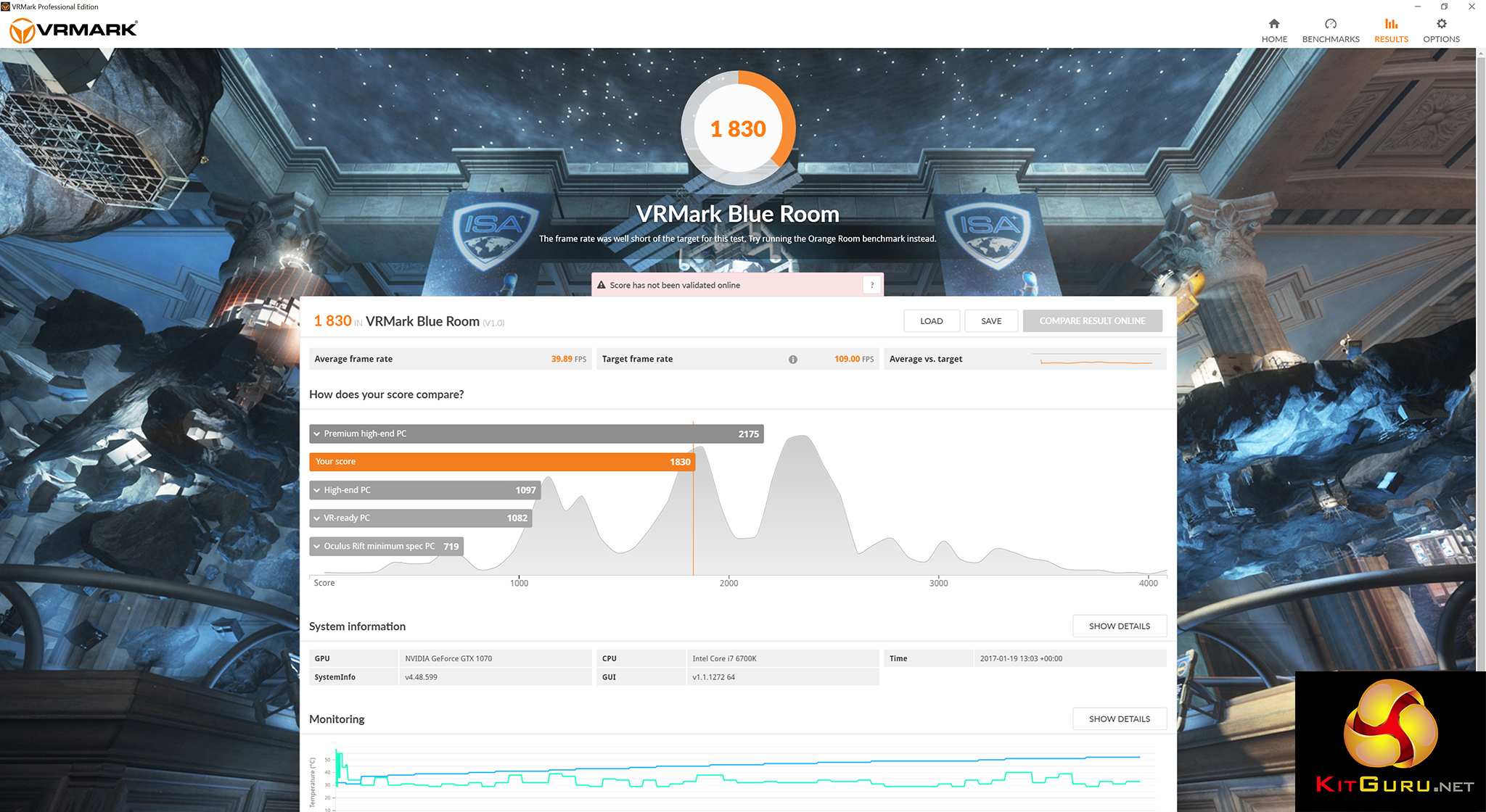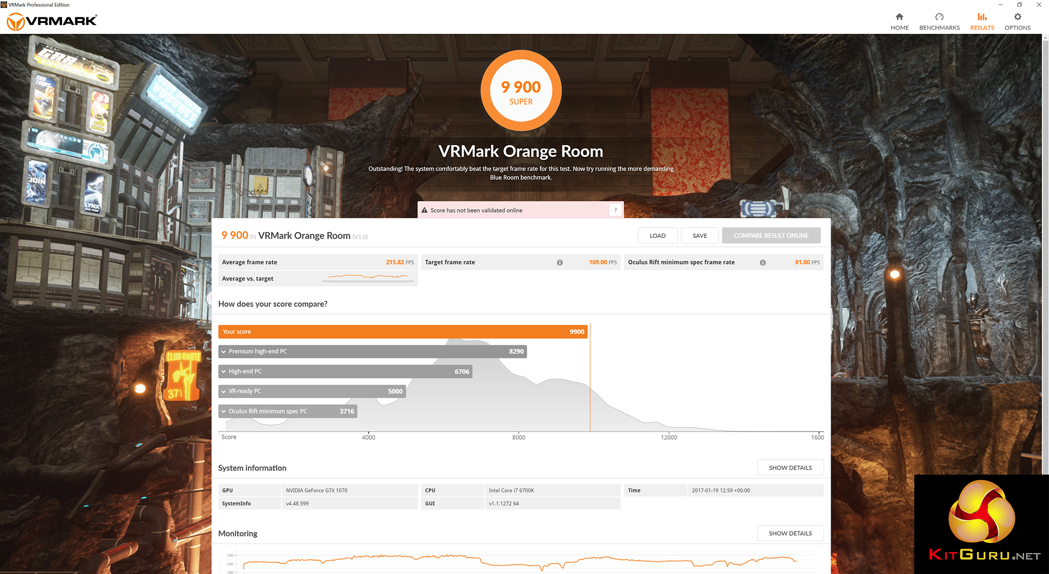 It's more of the same with VRMark – the PNY card sits above a GTX 1070 FE and below Gigabyte's overclocked GTX 980 Ti in terms of performance. The GTX 1080 cards cannot be touched, even with a solid overclock applied to the core of the GTX 1070 XLR8 OC model.
