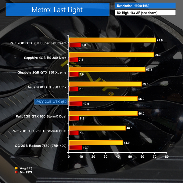 We opted for the High quality preset in the ever-demanding Metro: Last Light benchmark. AA was kept off, AF was applied as 16x, and tessellation was set to normal.