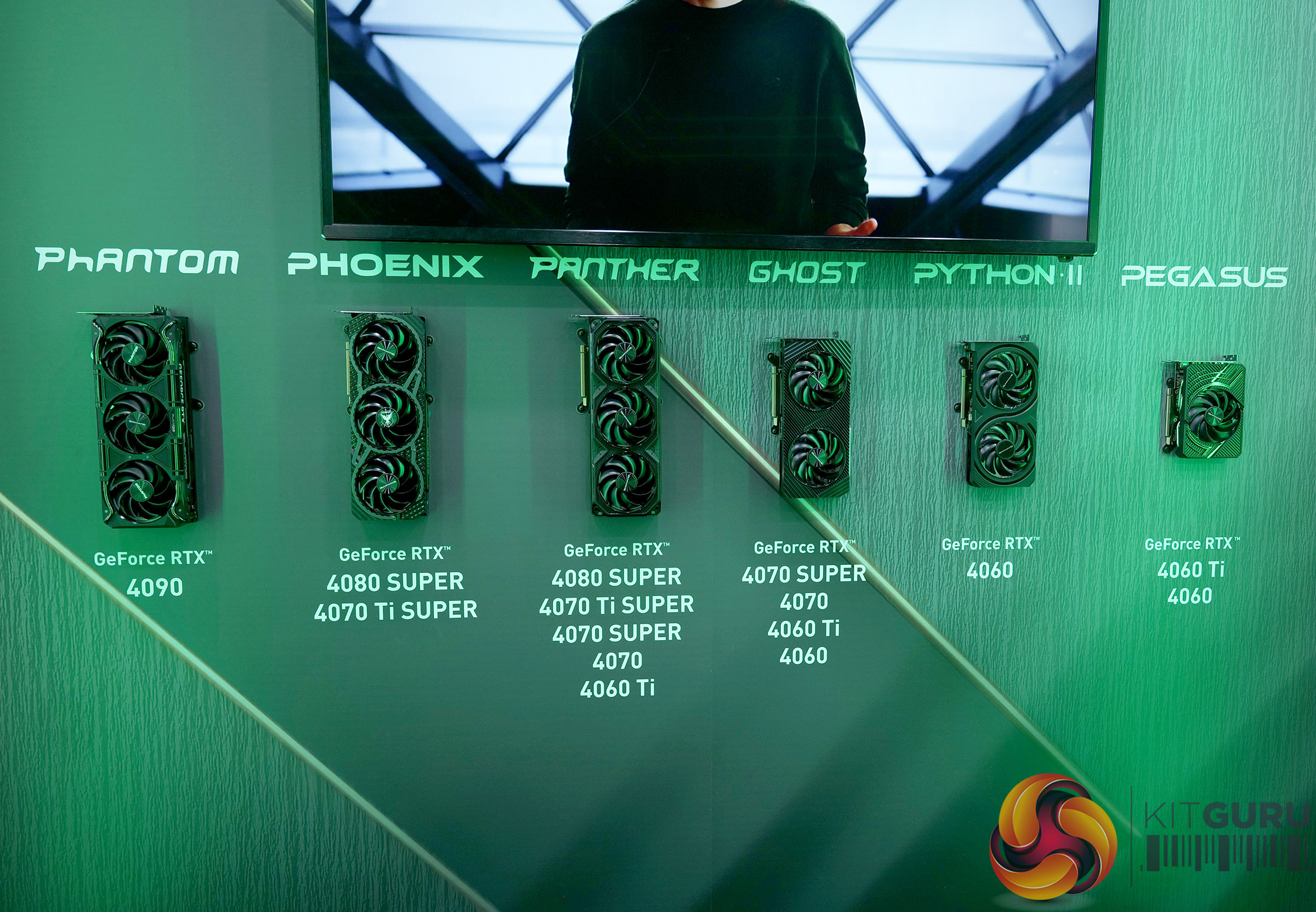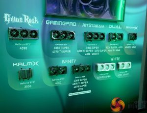 As for new custom graphics cards, Palit has the new Master and Beyond Limits designs. The RTX 4080 Super Master uses a sleek chapagne-metal cover and black cooling fins, for a simple, screw-less design that looks mighty professional. The RTX 4080 Super Beyond Limits is much more in line with what we would expect from a gaming graphics card, with giant ARGB LEDs emblazoned along the side in the Quartz version. The Crystal version has a smaller ARGB logo that stretches along just over half the length of the card.