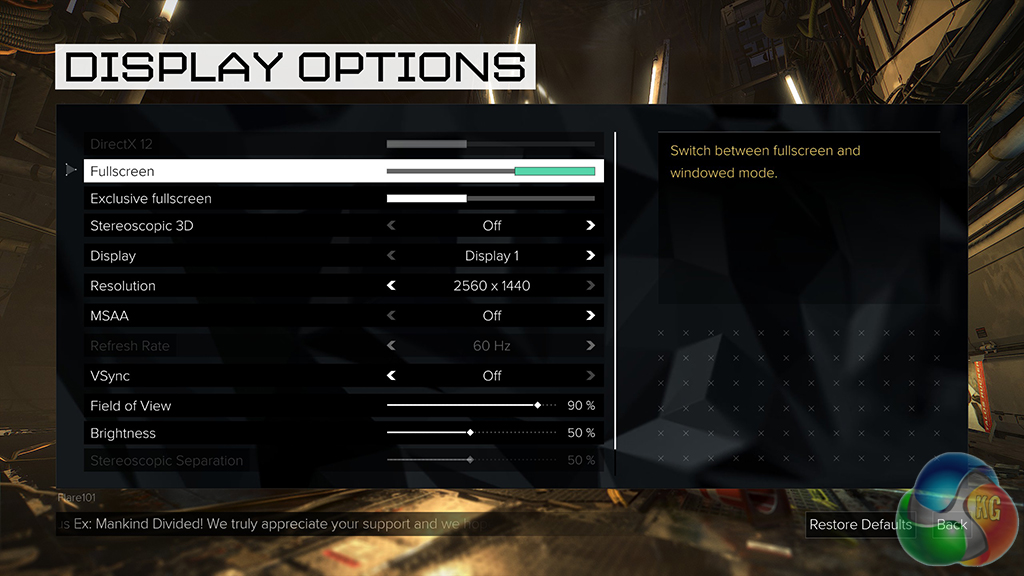 The game itself looks stunning. Running the game at Ultra settings with all of the effects switched on is truly a sight to behold. It certainly feels like the Dawn Engine was designed to push graphical boundaries, even on PC. There certainly hasn't been any major downgrades here to keep things in line with consoles.
