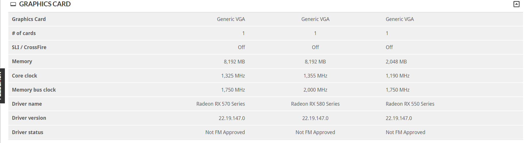 While we could not confirm the entirety of the specs published on WCCFTech, we did manage to validate that there are indeed cards operating under RX 580, RX 570 and RX 550 driver models on 3DMark's ORB database with said results.