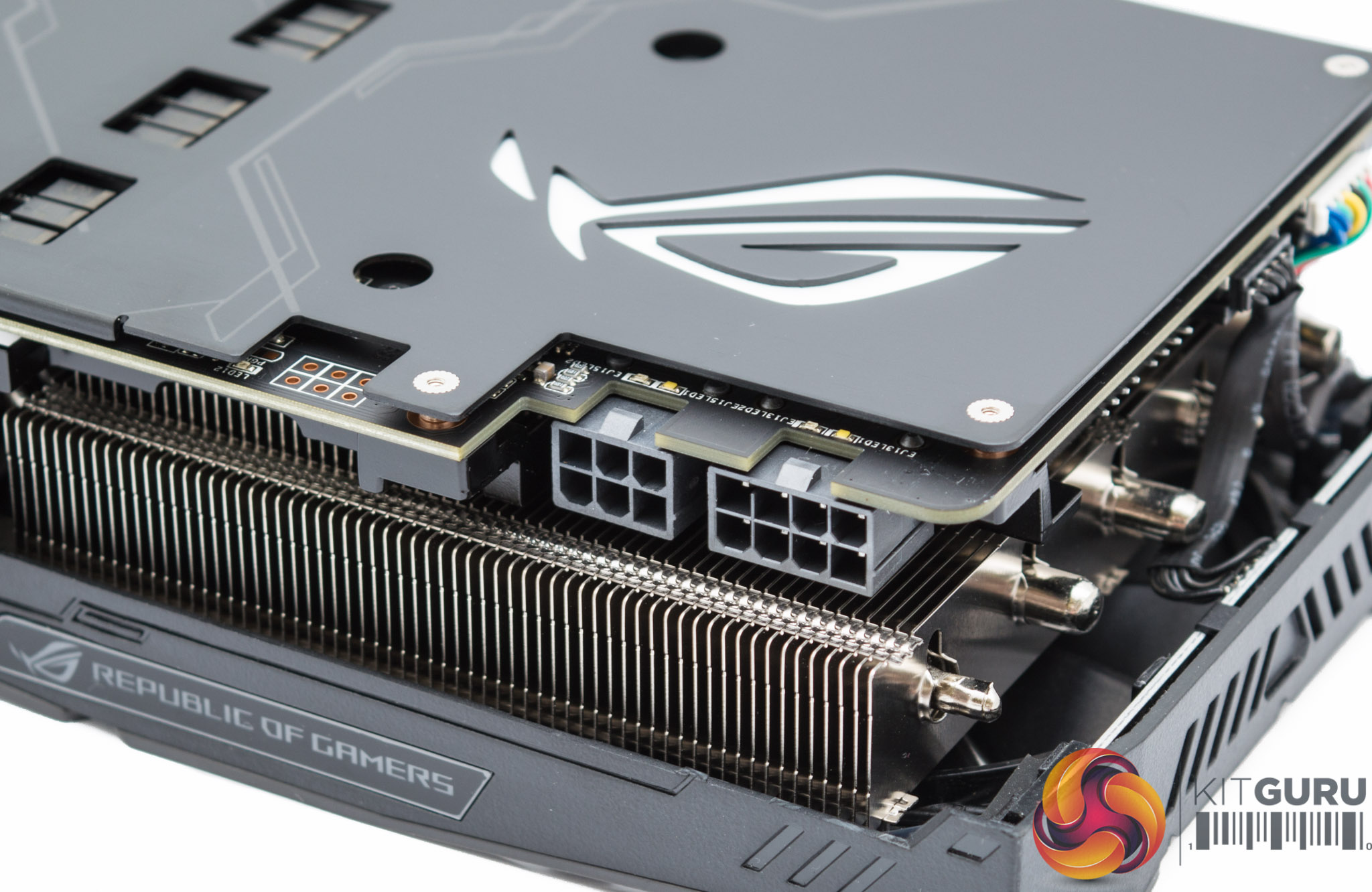 The cooler seems to vary from the unit KitGuru inspected with the ASUS ROG Strix OC GTX 1080 (A8G) back in late-2016. For starters there is a Nickel-Plated contact block, rather than direct contact copper heat pipes, which should lead to slightly increase effectiveness of the heatpipes that do not sit directly above the GPU core.