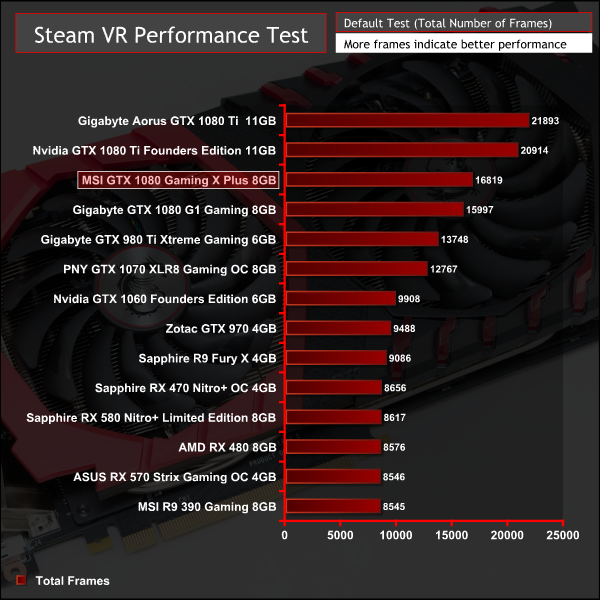 Steam VR test has a maximum score of 11 and the MSI GTX 1080 easily achieves this.