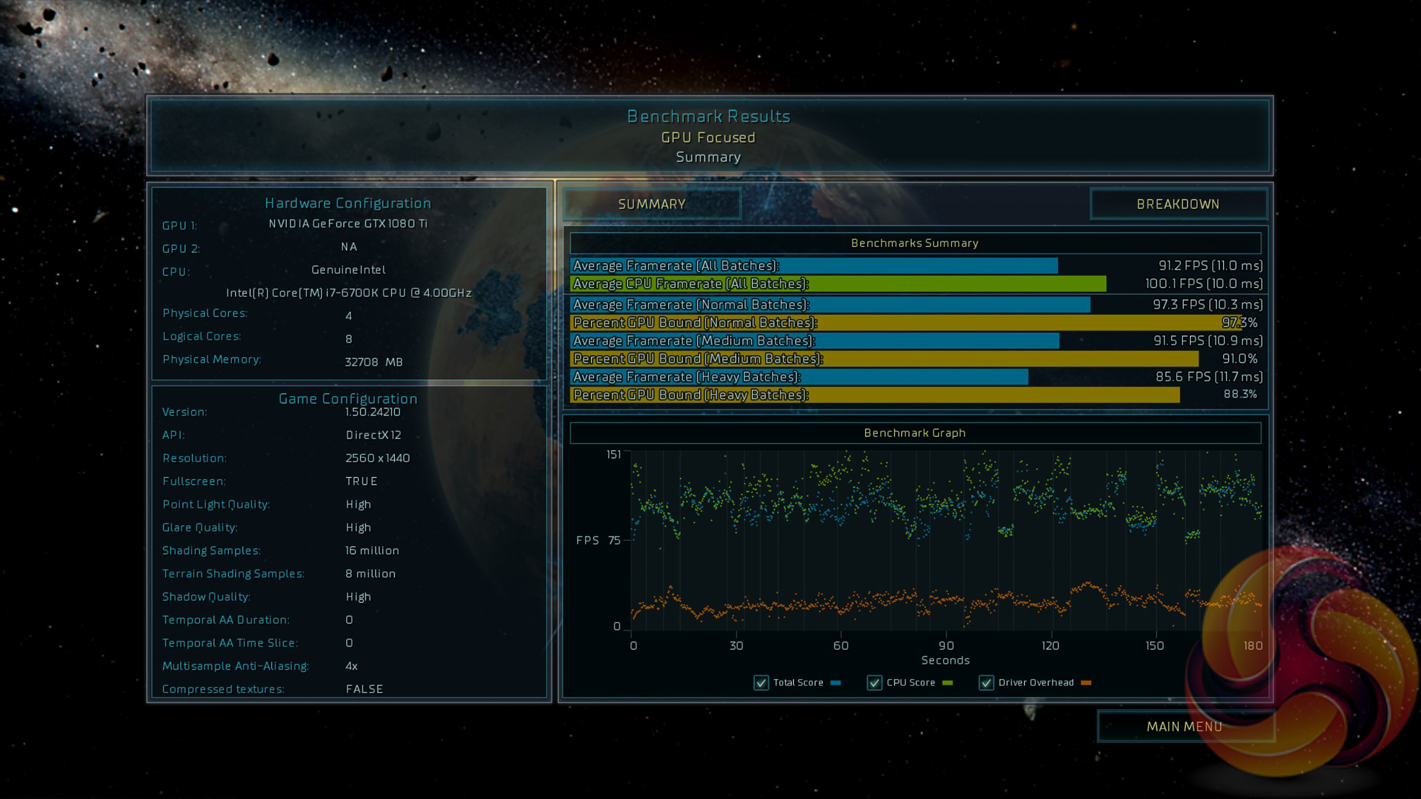 Ashes of the Singularity seems to be somewhat variable at lower resolutions but all GTX 1080 Ti graphics cards cluster within a few frames of each other.