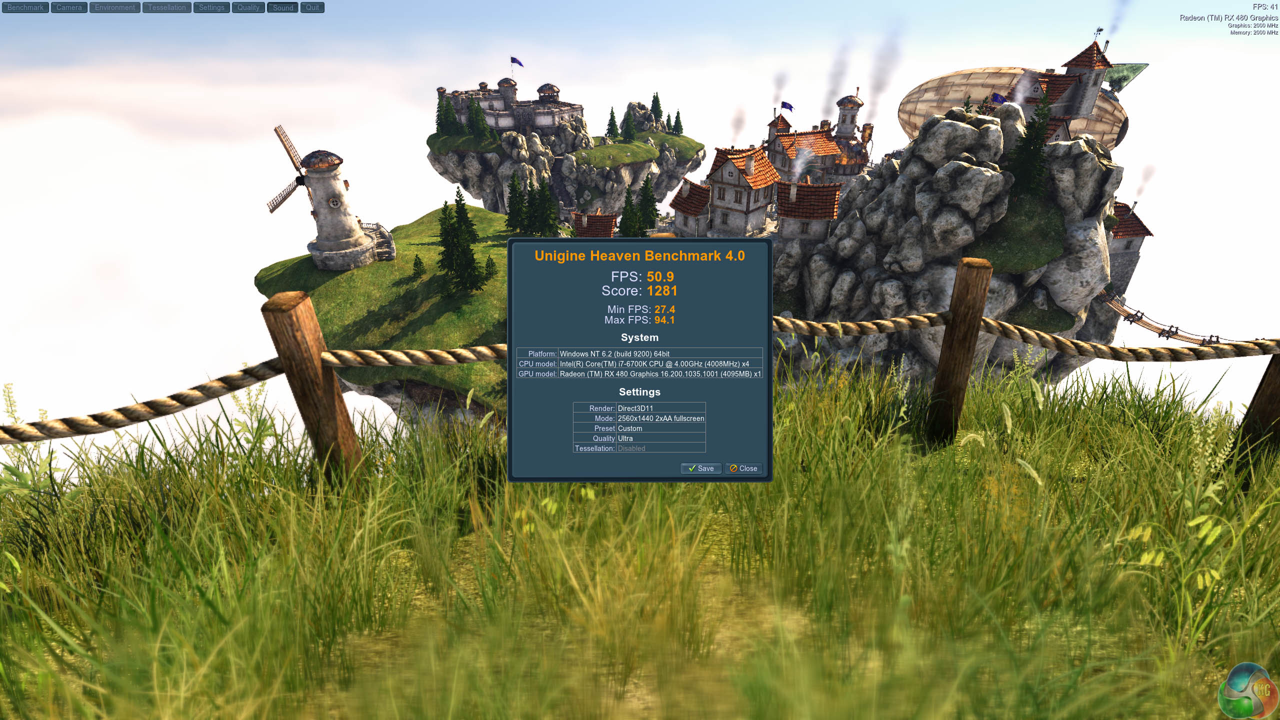 We test at 2560×1440 with quality setting at ULTRA, Tessellation at NORMAL, and Anti-Aliasing at x2.