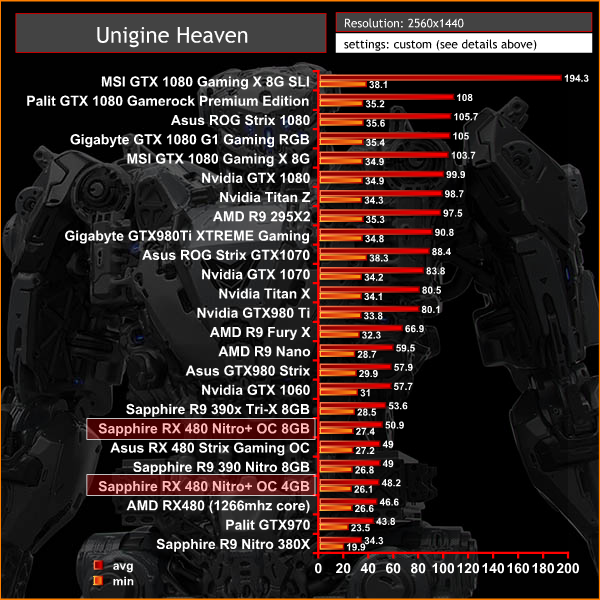 This game engine runs better on high end Nvidia hardware, however the Sapphire cards put in a respectable result, with the 8GB card approximately 7 frames per second behind the GTX 1060.